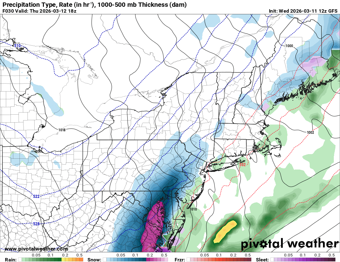 Snow threat will firmly lift north by the noon runs tomorrow. GFS fighting reality.