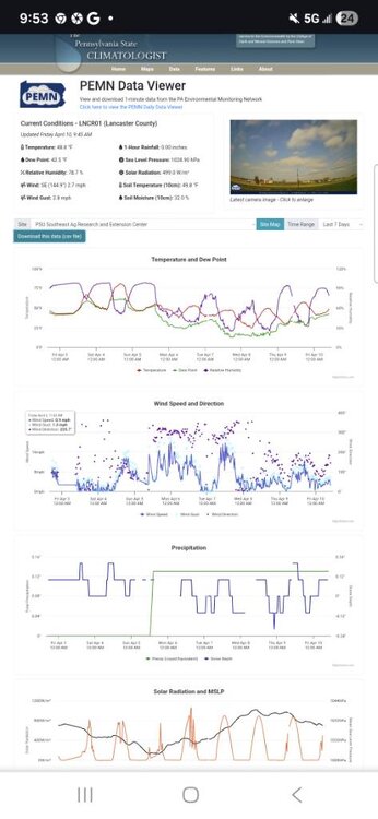 If people are not aware I wanted to let them know about the PEMN Network Penn state's putting a lot of places that are rural. We're talking about many thousands of dollar professional stations that put out excellent one minute data that can be seen in real time. If you go to the Pennsylvania climate website and look for PEMN viewer Sent from my SM-S731U using Tapatalk -