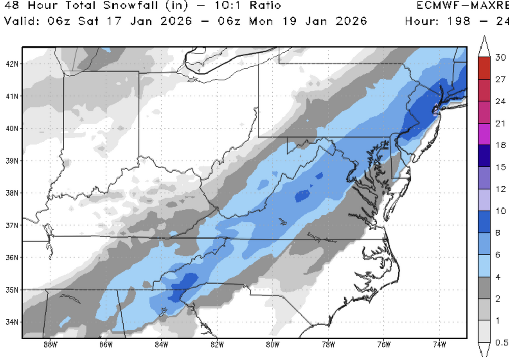 ECM-AI a noticable improvement over previous runs for next week. Still a miss/fringe event but close enough to take seriously. The day 9 event is a hit though largely disregarded due to being in fantasy land.