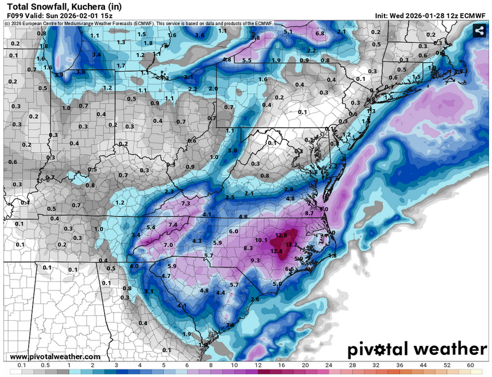 I'd take 5 to 8 inches in a heartbeat. Especially with frozen ground and an arctic high moving in. Yes sir. Let's do it.