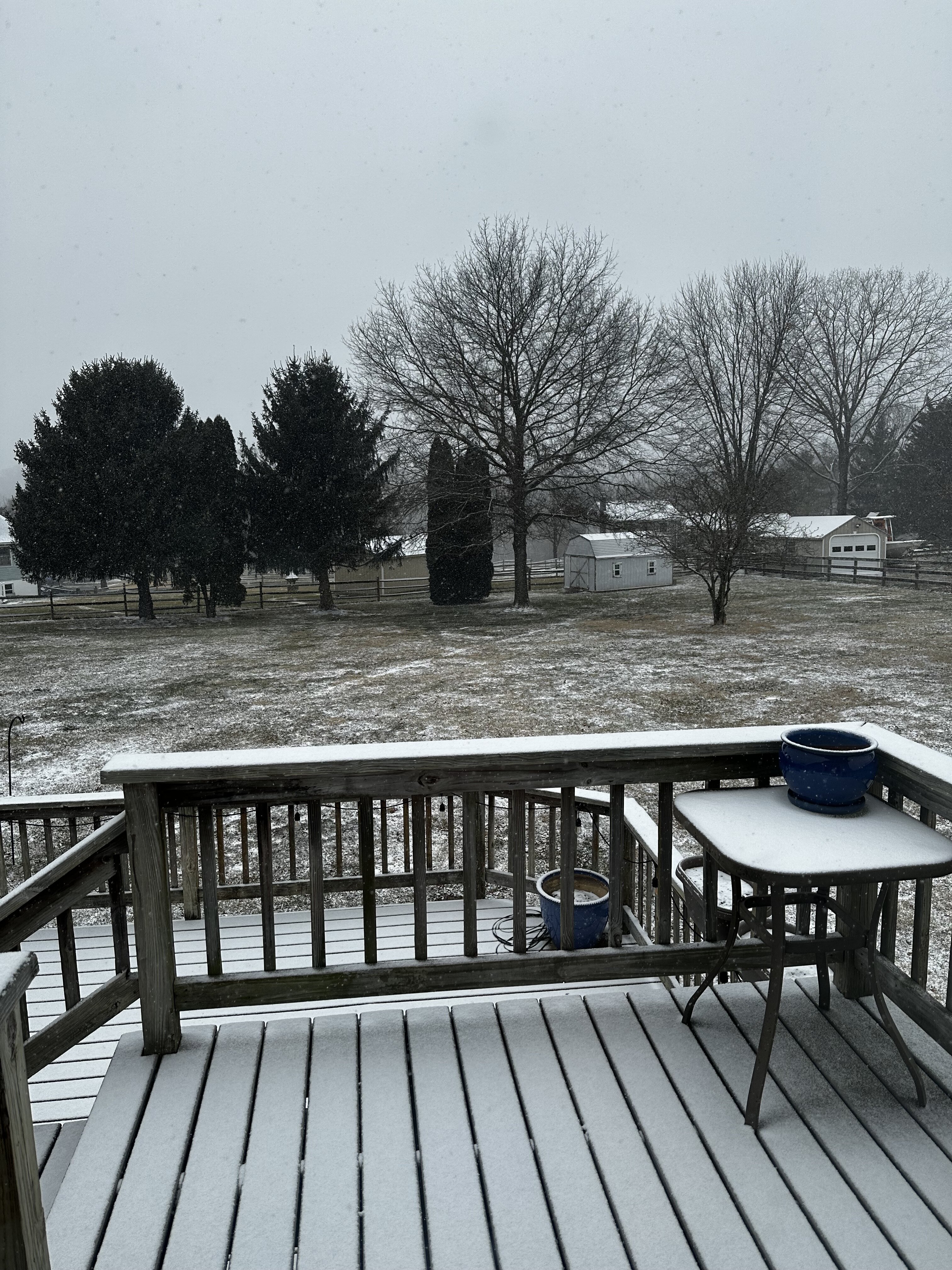 Ground is white, so dusting so far. Pretty heavy snow tho -