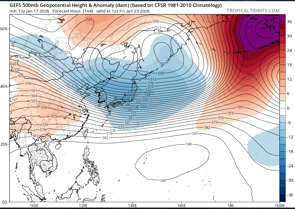 You can actually see whats going on into East Asia,you have some troughing going through Mongolia and ridging into Eastern China into Japan,yes into NA we rely on the NAO,but this still should be a -PNA as we get into next weekend,then a couple days later a Upper Level Ridge starts to build into Mongolia,this should/possibly build a +PNA
