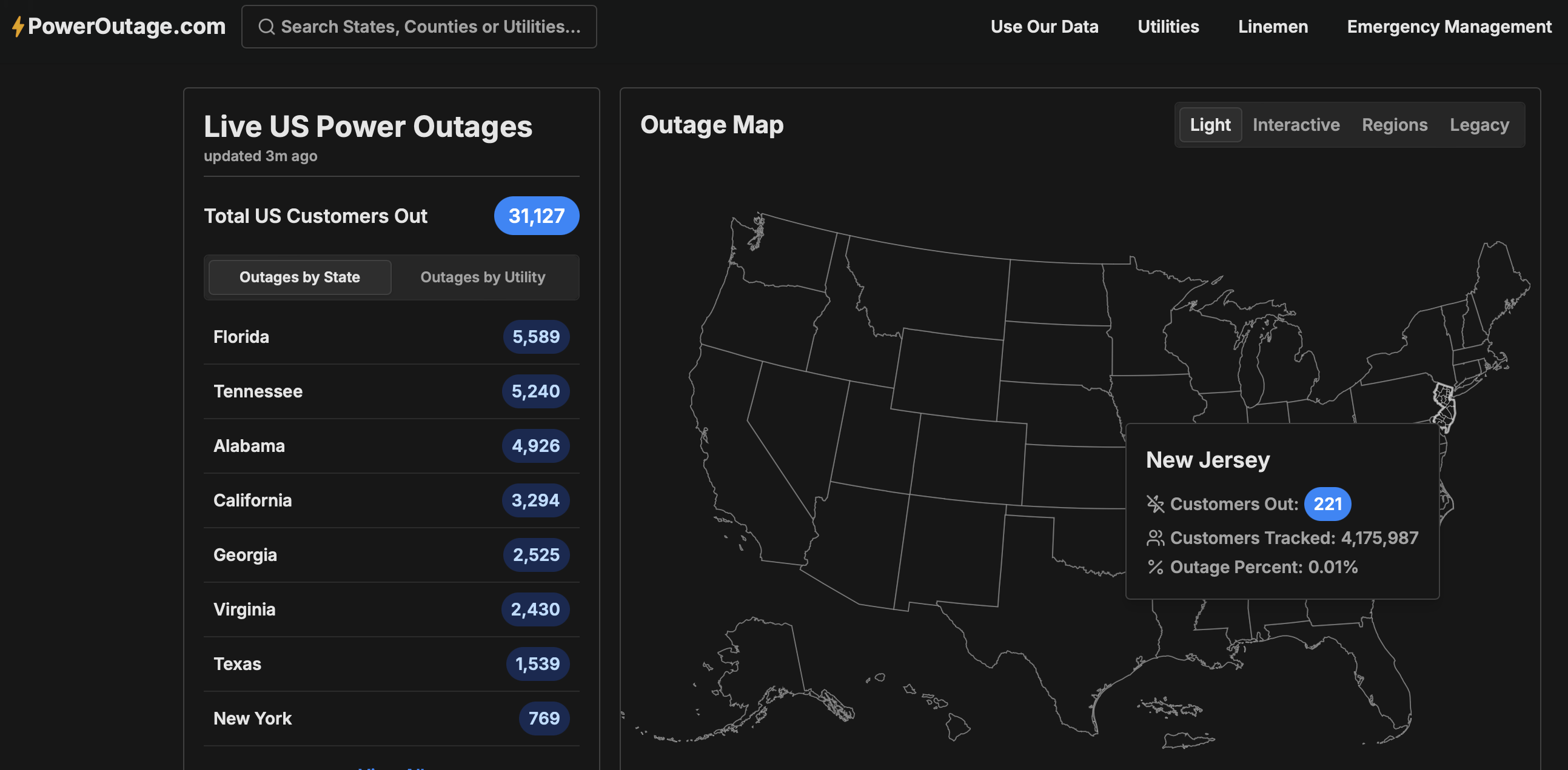 Thanks for the obs... snow today NYC metro mainly before 2PM if its to occur. Wind gust tools too low throughout the NYC forum. Trying to avoid being wrong, but I expect gusts to reach 40 knots at least at some I95 corridor ASOS's this afternoon PHL-NYC-BDR. Gusts already higher than Blend Of Models and all tools. This is an anomalously strong trough passage. I add the power outage map from 625AM as a baseline check to look back at 4PM today to see if anything happened. I don't like crying wolf but I am a fan of the ECMWF wind gust tool and secondarily all other tools. The secondary's are all lower. I prepare for a buffeting this afternoon and possibly a downed tree branch-power outage.
