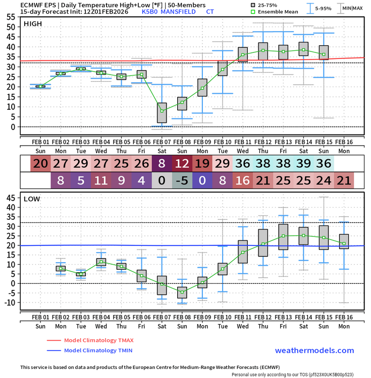 only warmish day on the EPS is February 12th when the mean is about 35 most days in the 20s and low 30s after day 10.. so am I missing something? looks far from a torch and end to winter..