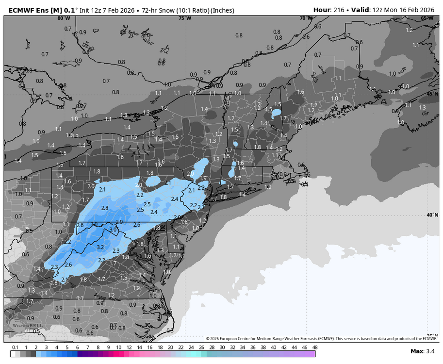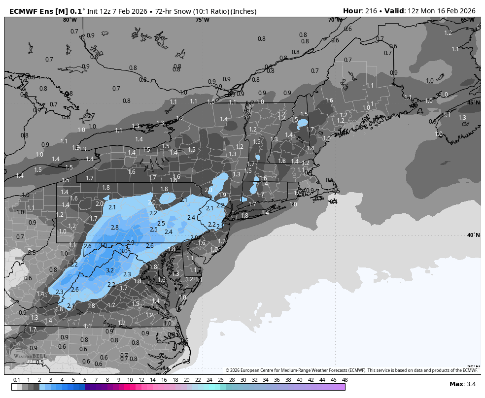 Euro ai and gfs ai like Presidents’ Day…. Little warm for nyc south big totals north and New England