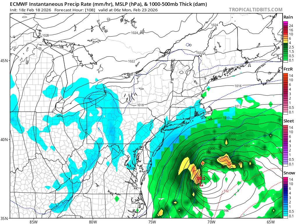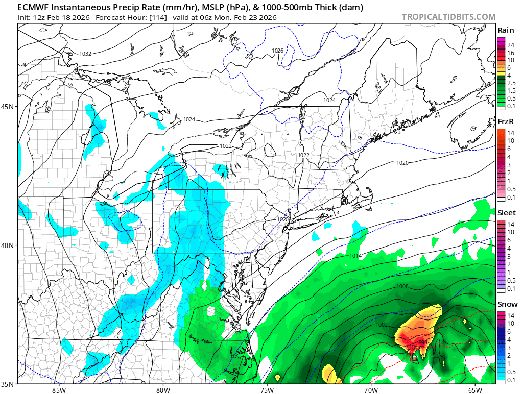 I’m taking the under on this one. It’s evolved from the 6” type scenario with good coastal transfer, and mostly a SWFE with weak players all around - surface high, primary, secondary are all weak… It’s also a much more progressive scenario — short duration. Ratios look 10:1 at best also. I’m going 3” here and calling it a day.