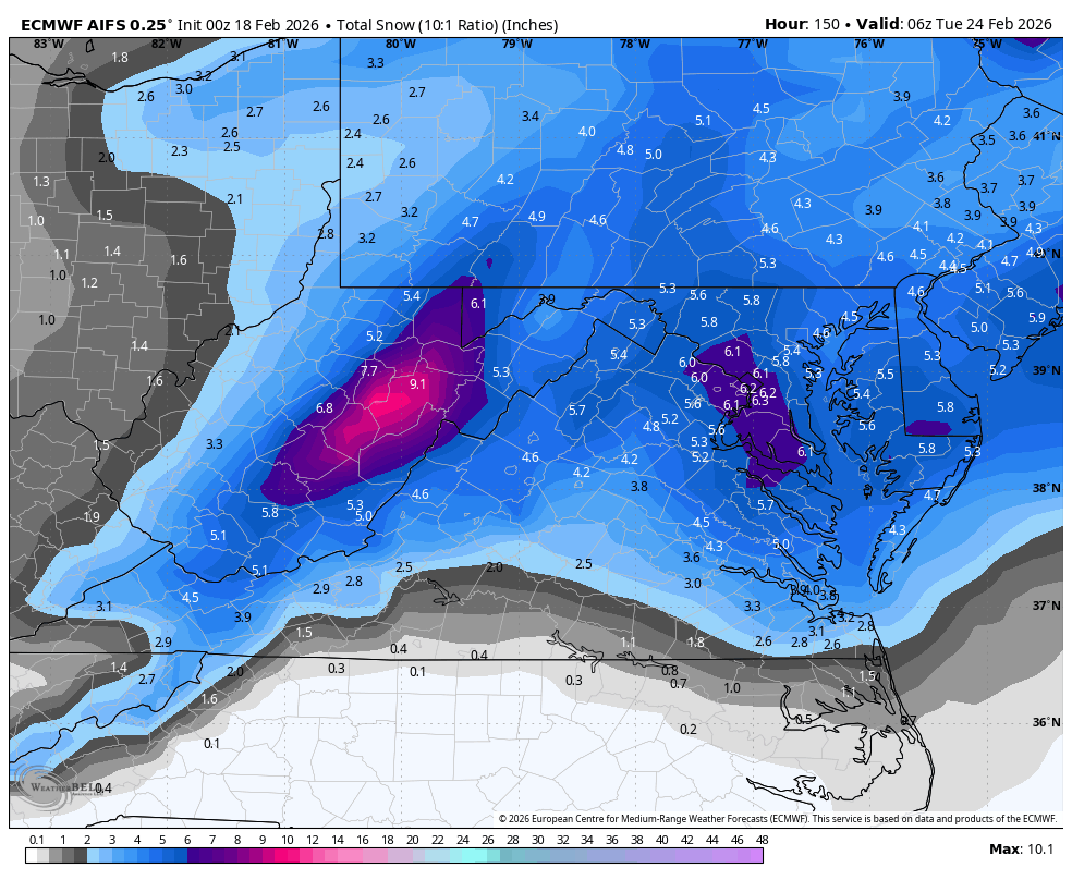 If I knew the answer to that. No the models know better than we humans do. But I will say that historically it's gone both ways. And it's also possible they'll bring back and less magnificent storm of 1-3,2-4, 3-6" or so or that we'll remain in the outer snowbands with a lighter/wetter snowfall. We need the ridge out west to stay stronger and leave enough room for this system to get wrapped up the way some of the models earlier depicted it. On most of the 00Z runs the top of the ridge was flattened making for a more progressive flatter trough in the east. As long as the AI models have this thing IMO it's a legitimate threat. WX/PT