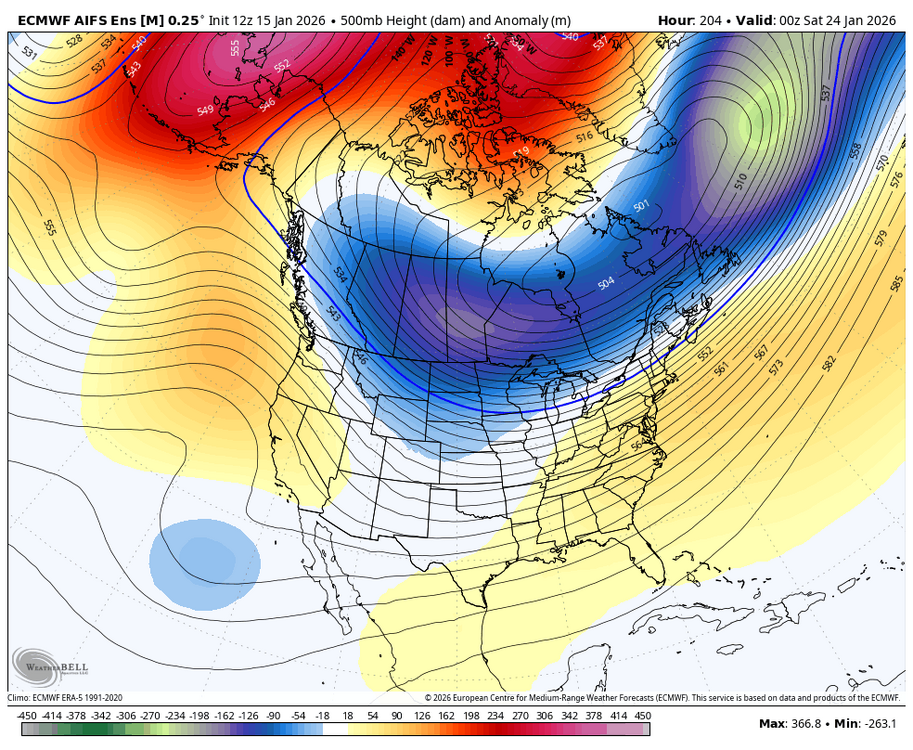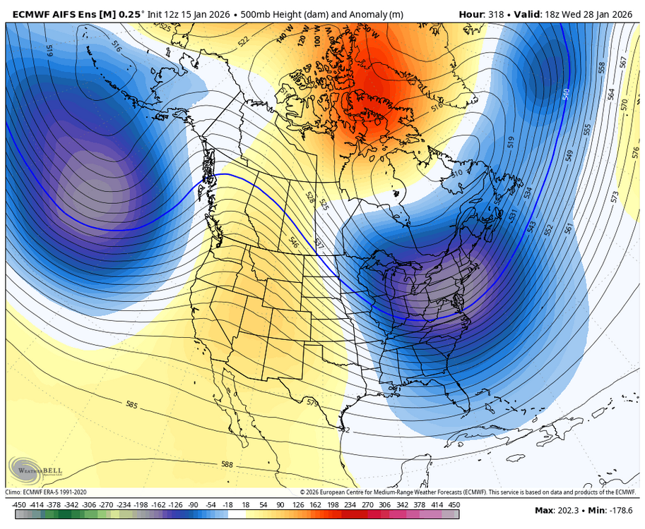 The EPS has a mean high in the single digits across the entire region towards the end of January. Wow.
