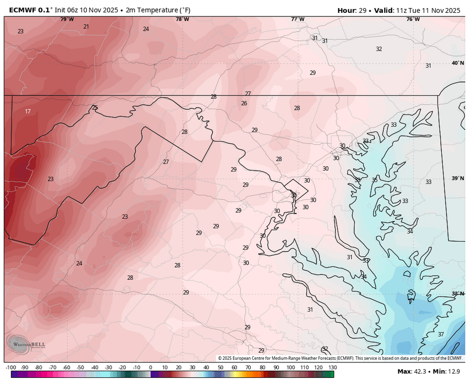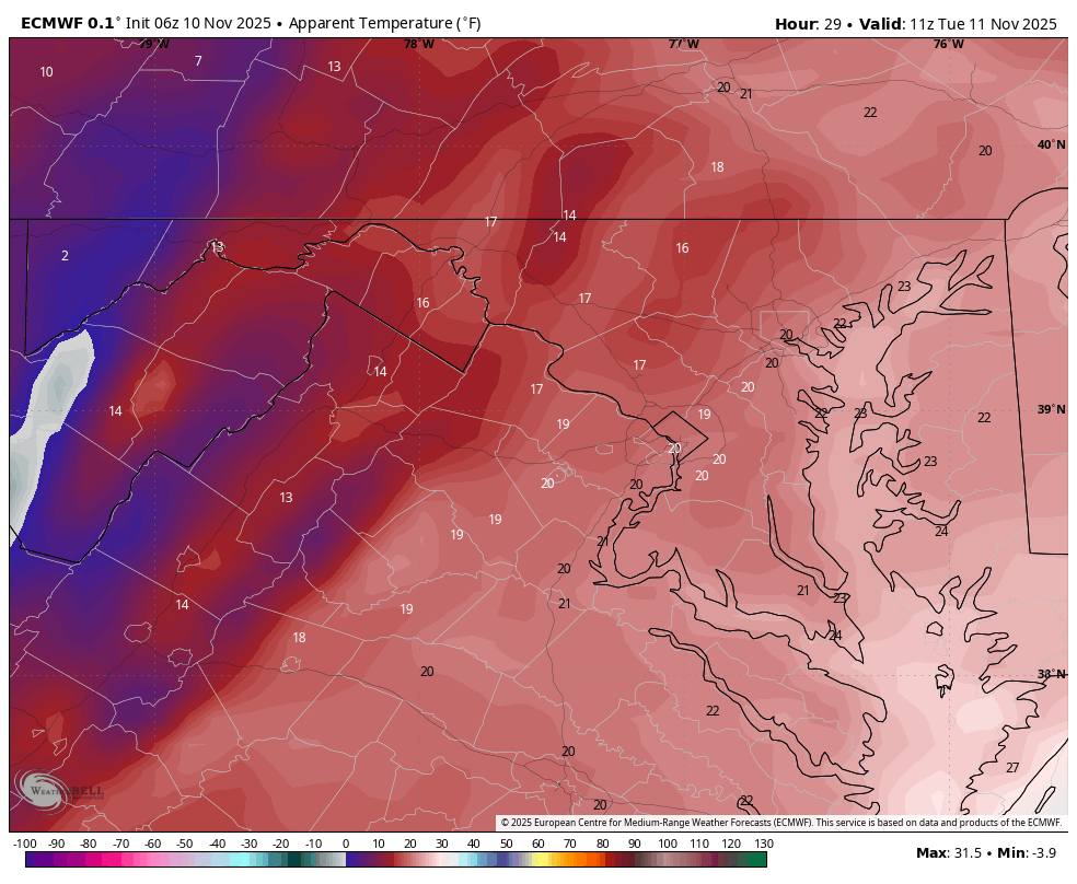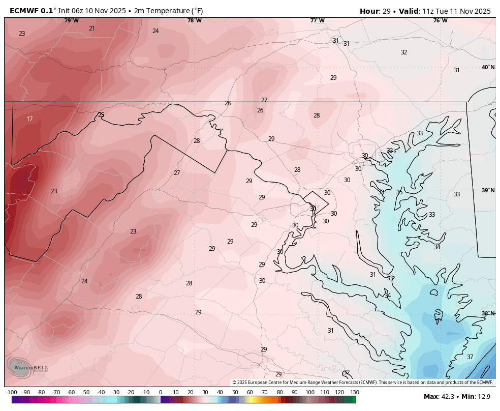 Yep cold really had trouble getting east of the Blue Ridge. Snow has been unimpressive in the mountains so far too