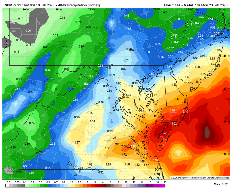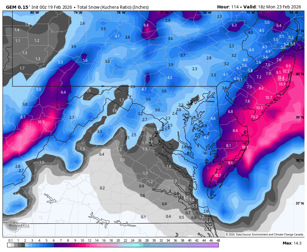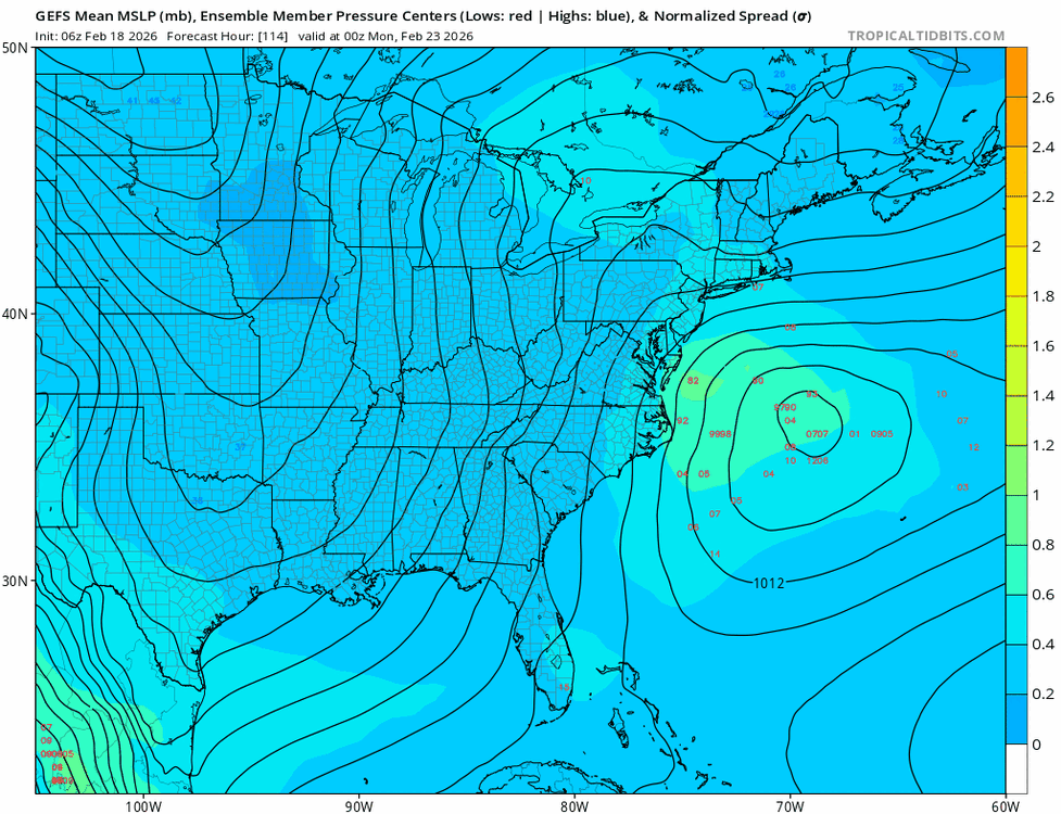 Oh I know just pointing out how rare it is…also noting it because assuming we don’t get a gfs solution it shows how difficult it would be to win from the coastal here we need the low tracking up the bay basically. -