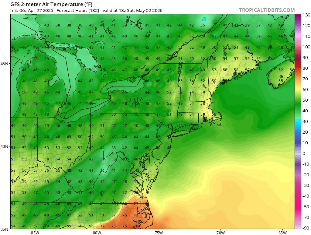 I'm a longtime follower and infrequent poster who grew up on the South Shore but now lives in Huntington Station. I'm a little confused by the complaints about this spring. Maybe it's because I'm used to the relentless sea breezes on the South Shore, but this spring has been well above average in terms of temperature and overall weather. My ambient station, which is well-sited and typically runs highs somewhere between LGA and FRG, is showing an average high temperature of 57.3 from March 1 through today: 52.6 in March and 63.4 in April. That feels closer to a Central Jersey spring than a Long Island one. Even the data that @bluewave shared shows JFK/ISP at 55.5/54.3 average spring-to-date, versus normals of 52.7 and 51.9 with precip below normal.