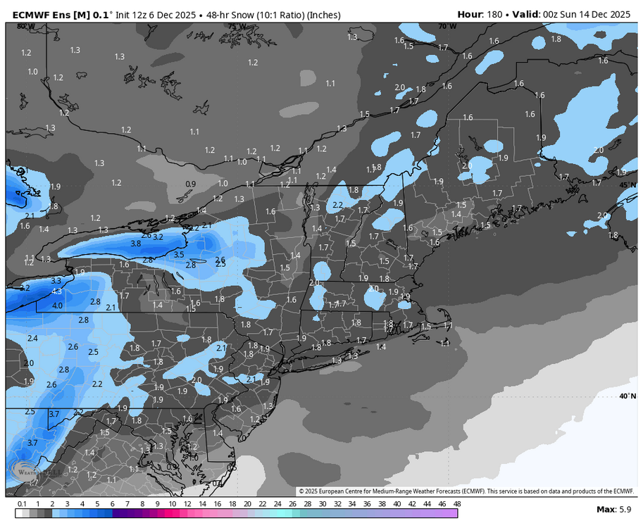 There’s a decent signal on the 12z EPS for a chance of another Advisory type of event in the Friday/Saturday period. -