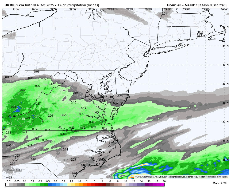 Long range HRRR is intriguing too. If I was you I’d be thinking about a 0.5” refresher course down there. See if we can get any more juice or a northern push in the next 36 hours.
