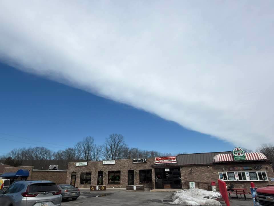 3. Did anyone else see this at the northern edge out the overcast cloud deck today? It's like someone took a straight edge, drew a line across the sky, and colored the bottom blue. I saw it, but this is NOT my photo.