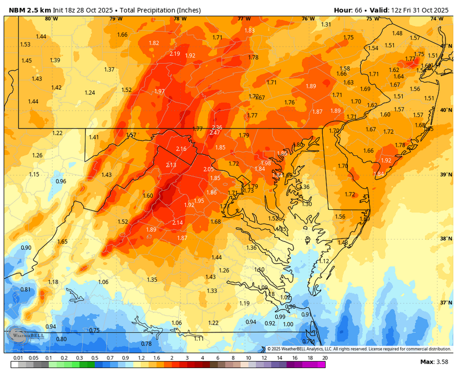 ESE flow ahead of a low tracking inland means lots of upslope for E PA/upstate NY and showery weather for the city/coast. Some places east of the low would get lucky with banding but by far the best would be well inland. Looking like a couple/few day nasty period without much drought help here. Thankfully we had the storm mid month to help a little.