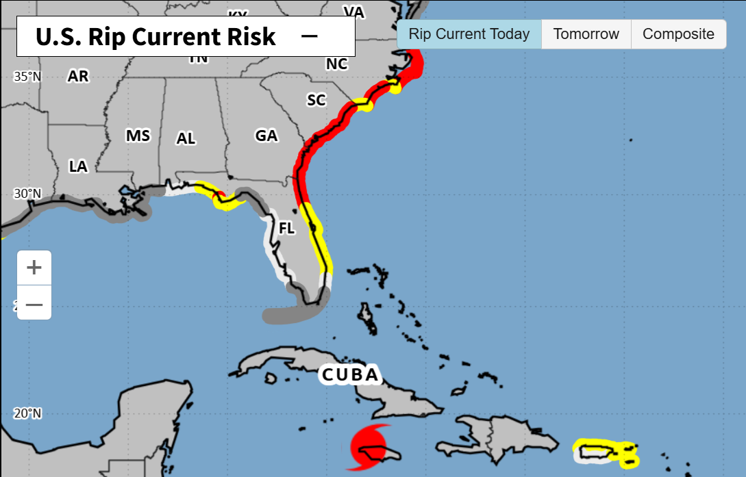Is Melissa causing the current rip tide off the SE US coast from the other side of Cuba? Or is that due to other environmental factors and just a coincidence? -