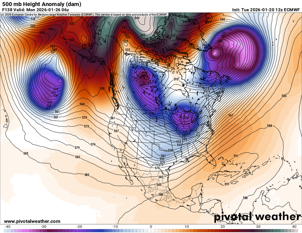I did not read back on all the posts in the last 18 hr on the upcoming storm, so pardon the repetition or if I state the obvious already said. First, "hope floats" for CoastalWx seems to working. He has consensus on his side a least!. LOL Second, wow, what a change from ydy on all global models. The lagging 500 s/w in Midwest is *much* stronger now, and complicates things a lot. Perhaps this is the "English" CoastalWx was relying on for the TICK to the N? So it may be the initial sfc low off the coast is more of a flat wave, and does not push the baroclinic zone too far offshore, and then rear backup upper-level supports pulls things back for a new sfc low. 00z ECMWF was quite aggressive w/ this, but the 12z backed off. GFS now flatter than a pancake, but GDPS and UKMET both suggest what the ECMWF has being doing. 11 of the 20 12z GEFS members show a hit for SNE. So it appears it all hinges on what the lagging 500 s/w does in terms of depth and how far S it can dig. You can clearly see the differences in the 138 hr 500H anomalies I attached from the 12z GFS/ECMWF/GDPS/UKMET. Looking at the pattern across NAMR. There are some problems. First, the wavelengths are too long, and the western ridge much too far W. Also, there is little in the way of s/w ridging in the NATL. So the Midwest trough is more or less a straight shooter W to E. It goes from positive tilt in the Great Lakes to neutral farther E, but then just stay neutral w/ the trough neither weakening or deepening as it moves across the NEUS. Even so, that does not mean CoastalWx should panic. You don't always need a classic pattern/setup to get a weenie event (see March 6-8, 2013 and a few others from the mid 2010s). Slight changes can be huge in this case for sensible wx in a region/area. -