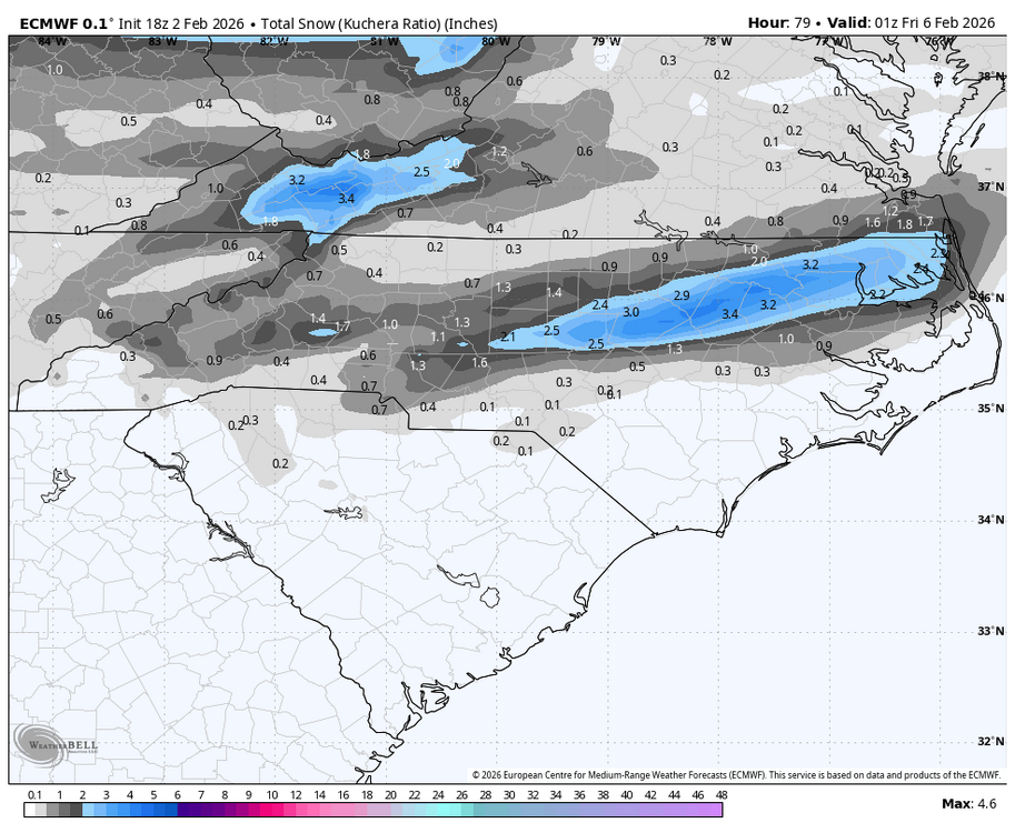 My area is so often off, as is Daniel Boone's that an artificial snow hole shows up on the GFS and NAM over us for almost every storm. This is something like 8 years in a row here with about 50 percent or less than actual accumulation recorded. -