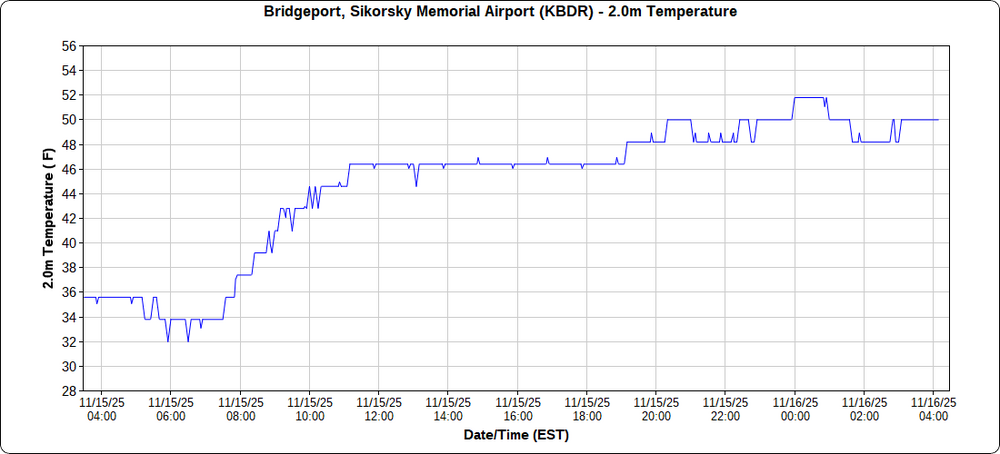 16. 35/34. Had some moderate rain earlier, but lighter now. About .20” tonight: