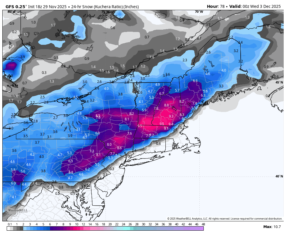 Inside 100h too. This is the time it needs to hold up. Numerous shortwaves and excellent cold in the region up to mid-December. Let’s get on the board first of course, but we might be in business throughout New England. Not an ideal pattern, but good enough. -