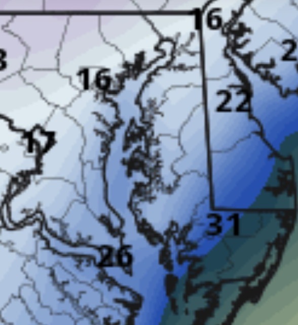 St. Mary's county would have 8-10" snow followed by well over an inch of freezing rain. That would be real bad
