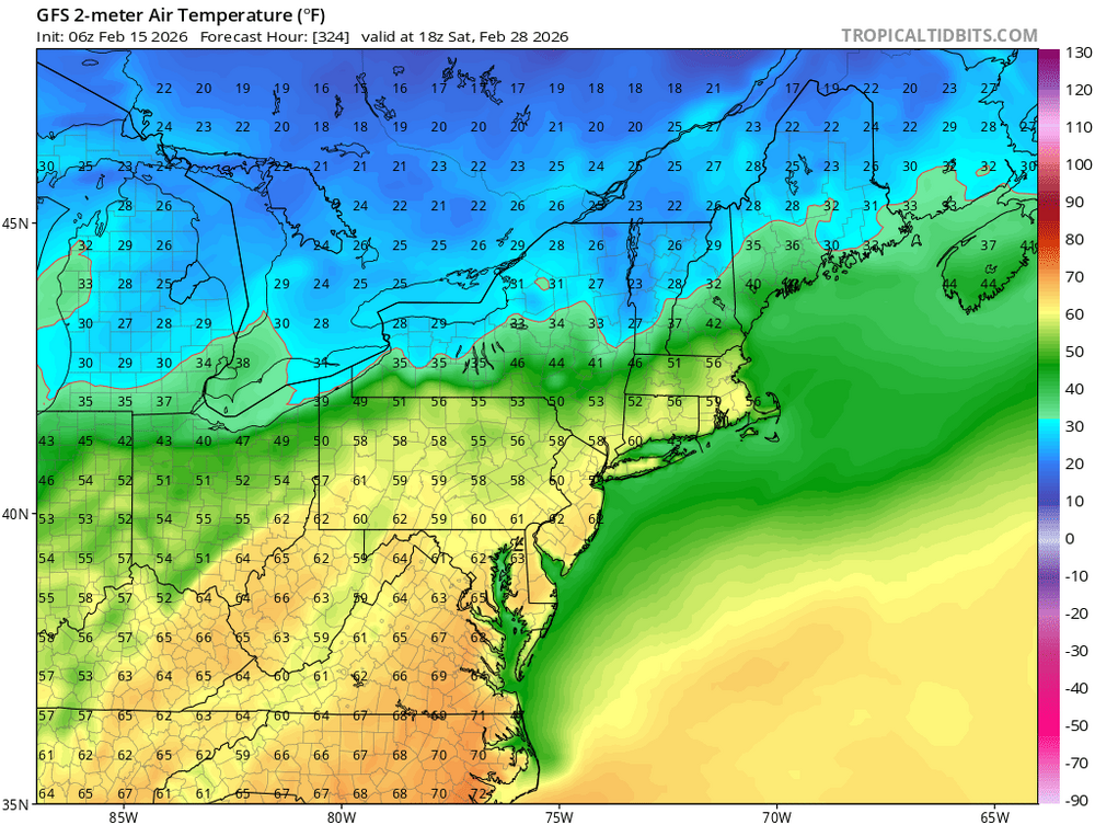 AI gfs agrees on miller b feb 23-24, just a tad north. Something to watch for any favorable trends (if any) in the coming week.
