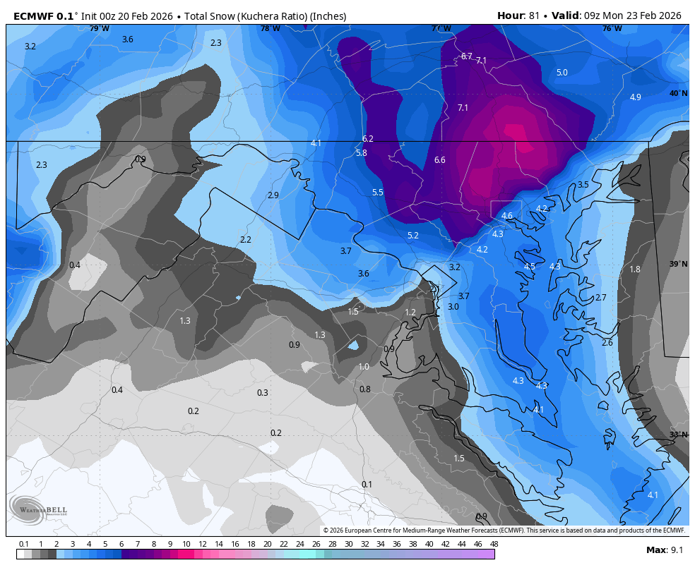 Euro holds. Light to moderate event for all of us. We still have a window for a west trend and a big storm but if we don’t see it by 0z tomorrow night, it probably won’t happen.