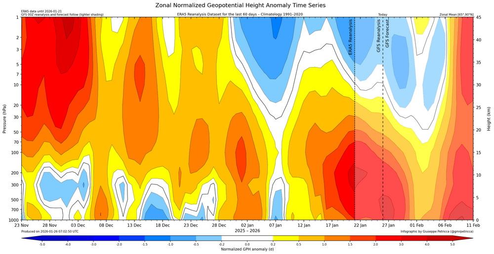 The unusually early SSW event leading to the disruption of SPV in late November was possibly caused by an interaction between the record low Arctic Sea ice near the Barents and Kara regions and the -QBO. This event seems to have caused key features of the November 500 mb pattern to lock in for the winter. It’s also unusual for some many elements of a November pattern to become amplified and persist into the winter. The current activation of the STJ and the recent largest snowstorm since January 2022 for spots in the Northeast is probably the result of the forcing finally shifting east of the Dateline. https://agupubs.onlinelibrary.wiley.com/doi/10.1029/2025JD044403 one model, HadGEM3-GC31-MM, has a statistically significant equatorward shift in vortex latitude, deceleration of vortex winds, and increase in sudden stratospheric warmings. Its response is found to be highly state-dependent, significant only in the easterly phase of the quasi-biennial oscillation (QBO). Though we cannot comprehensively conclude why models simulate this range of responses, our analysis does highlight areas for consideration in future work to better constrain the stratospheric response to Arctic sea-ice loss. We explore the role of ensemble size, resolution and basic state, including zonal-mean winds in the polar and midlatitude stratosphere and upper troposphere, as well as the QBO. https://alaskaclimate.substack.com/p/december-2025-arctic-climate-summary For the second December in a row, the Arctic-wide average sea ice extent was the lowest on record in all of the major sea ice analyses. In the National Snow and Ice Data Center analysis, the December 2025 average extent was 11.22 million km², which is about 15 percent lower than the late 20th century December average. The Barents Sea and Baffin Bay had the lowest December extent on record, and northeast of Svalbard the average pack ice edge was north of 81°N November 2025 and December into January 2026 500mb composites