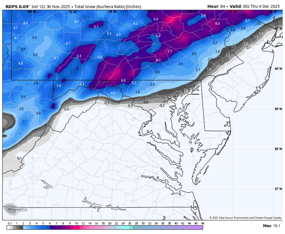 The red flag, however, is not one mesoscale model is forecasting snow.