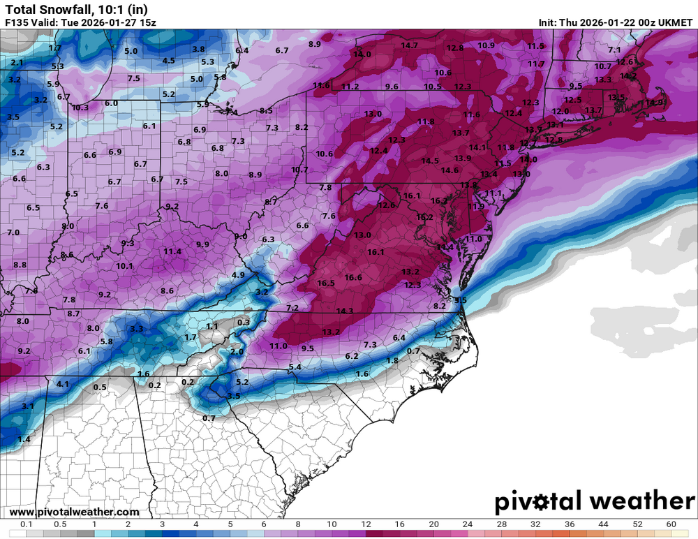 All the foreign models spitting out a damn near perfect App Runner at 00Z. It has been a long time since we've had one of those. Sux the tightrope must be walked for one to truly pan out without a pre-coastal handoff. Those are where the big dogs for my area usually come from. Not saying this one will but if we're gonna see a foot from one storm around here its a good old fashioned App Runner. Still riding the Canuk like I stole it!