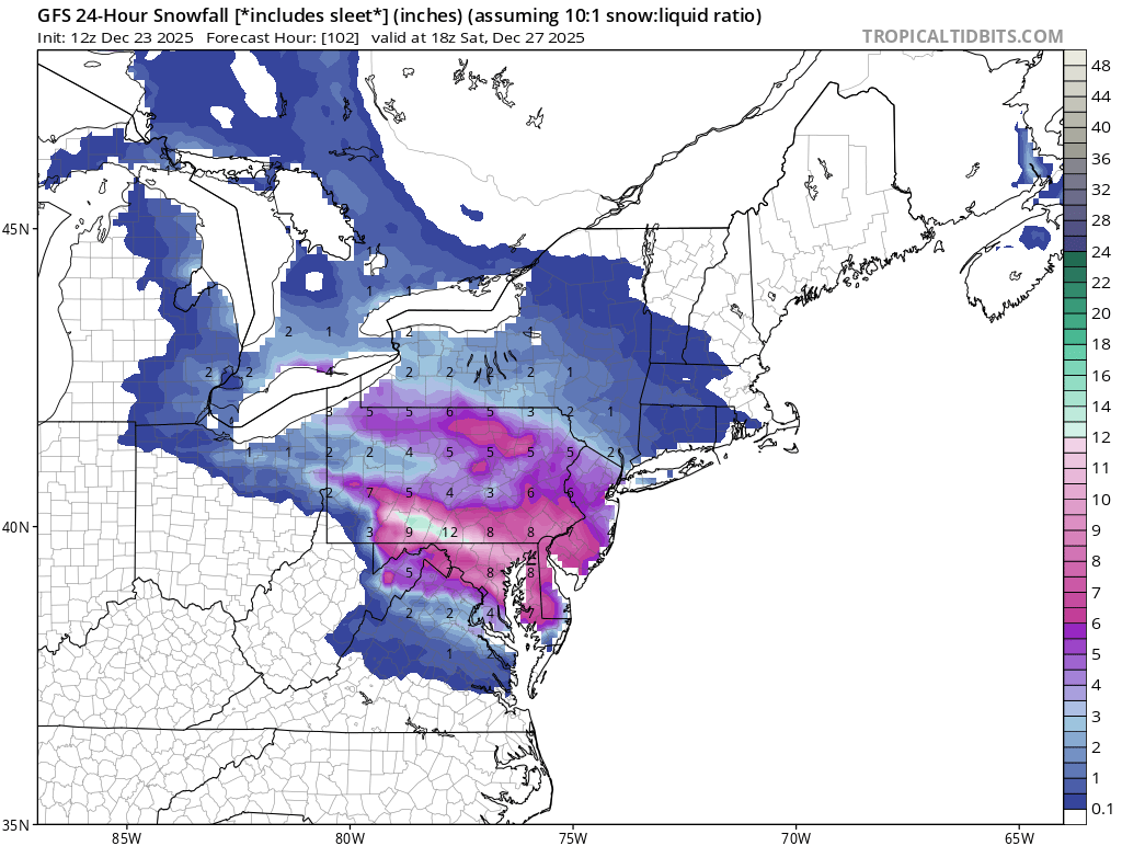 12z GFS 10:1 24-hour snowfall for Friday night . -