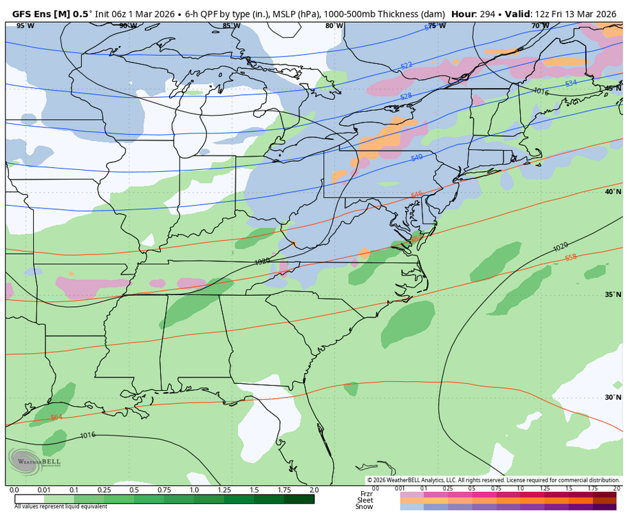 We need a trough in the Tenn valley. Mean trough was further NE this Winter, favoring NYC to Boston. - Today