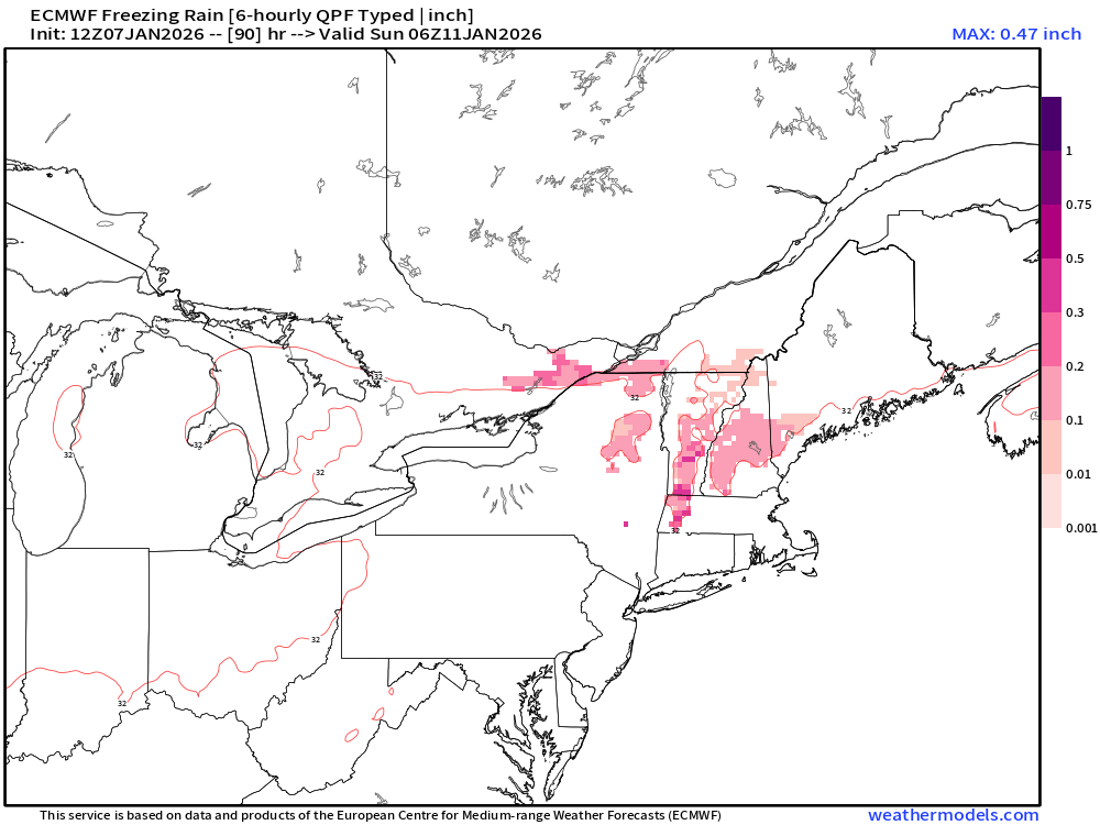 Yeah there is an increasing signal for icing across the interior this weekend. Going to be difficult to lift the sfc warm front north with flow becoming parallel to the front and you can see sfc winds even becoming more ENE across the interior -