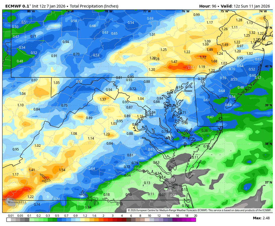 Nice slug of moisture incorporated into the Friday/ Saturday rain maker now: WPC edging up precip forecast: -