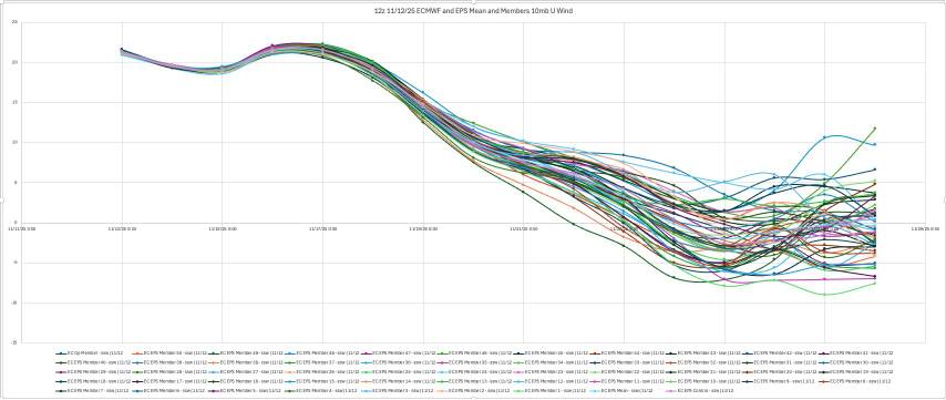 Great stuff from Allan Huffman. Today's 12z op ECMWF and EPS mean both show the 10mb U wind turning negative, meaning a change to an easterly wind direction over the polar regions and an #SSWE with 41 of 50 EPS members (82%) showing this reversal with 11/25 the day with the most negative members. Sudden Stratospheric Warming Events, can weaken the tropospheric polar vortex, allowing for increased high latitude blocking (-AO) and the enhanced risk for arctic air discharge into the mid-latitudes (North America, Europe, East Asia). A late November SSWE is relatively rare, and COULD help favor a cold start to meteorological winter(December). The last November SSWE was in 1968. Sent from my SM-G998U using Tapatalk
