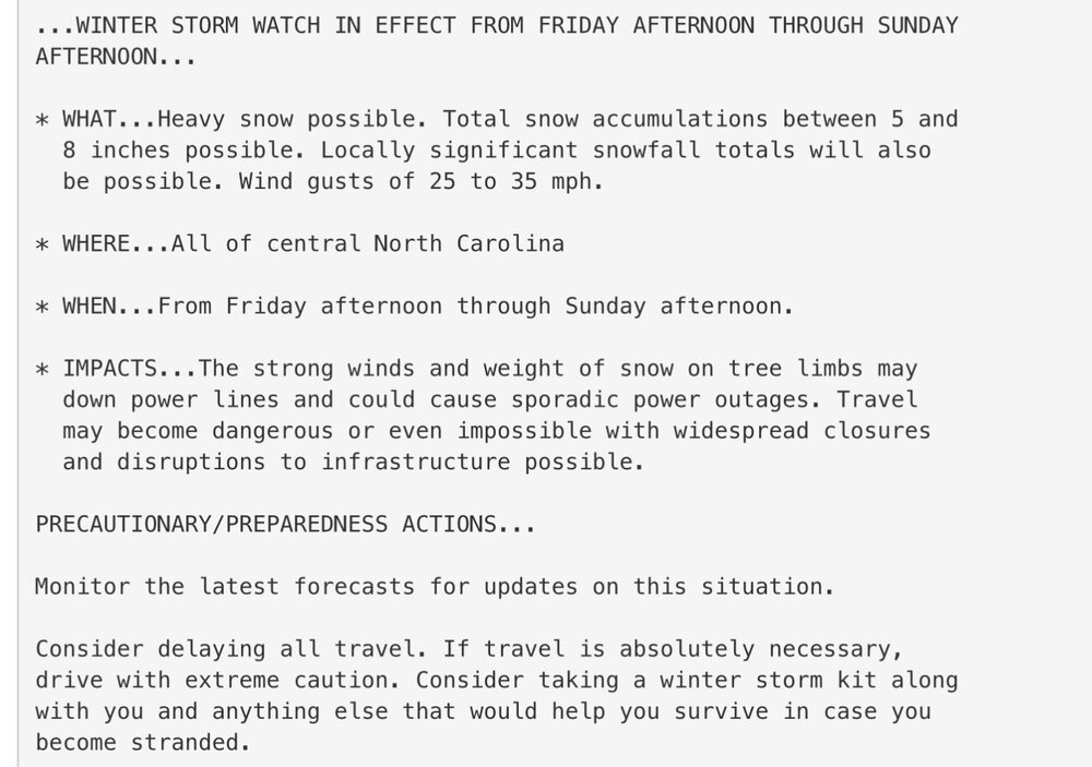 Winter Storm Watch here in Jacksonville, mhx stating 8-12 inches. -