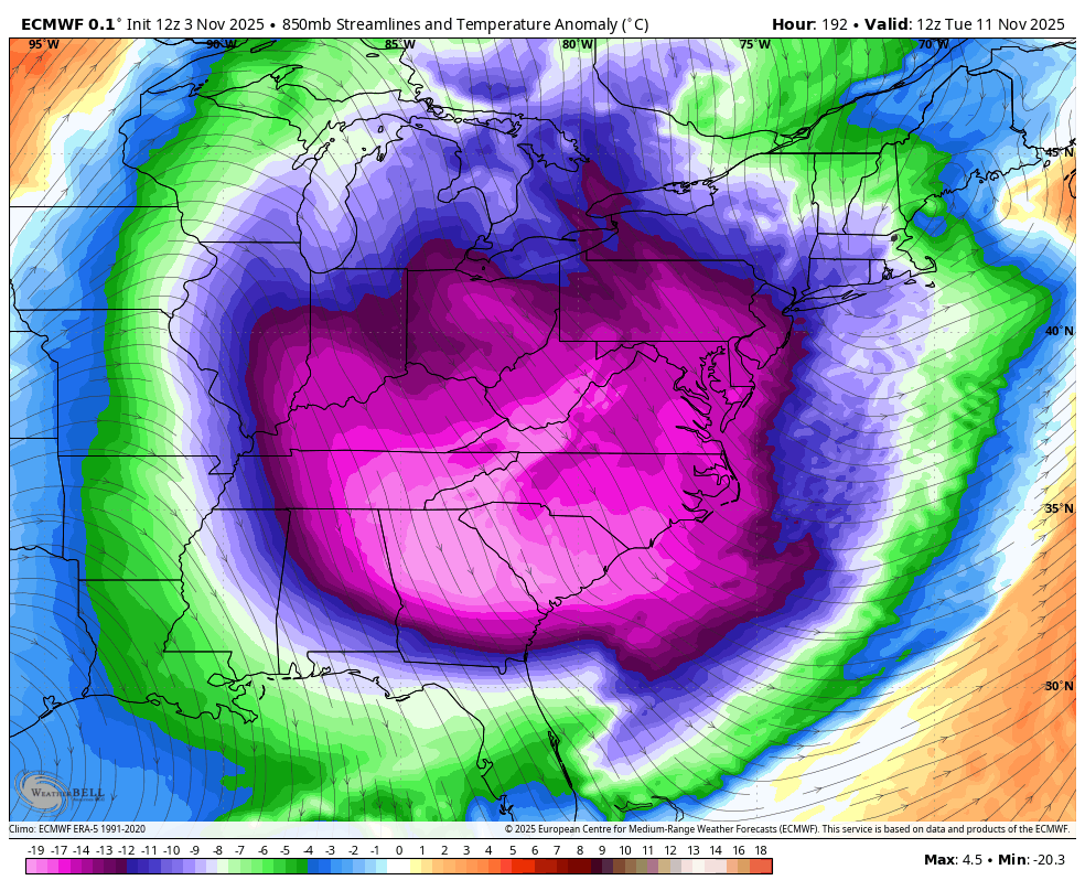 Inter-model guidance still showing a nice cool shot around Nov. 10-12. We'll see if it holds.