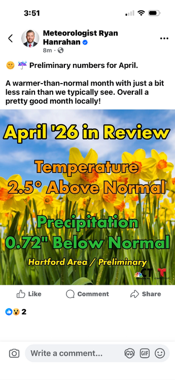 NYC was very close to JFK and LGA in staying under 50”. So even if there was a small undermeasurement, it would have been closer to 45” and not 50”. For NYC along with JFK and LGA they need a winter average temperature near 32.0° or lower just to have a chance at a 50” season. While it’s necessary, it’s not always sufficient. That’s what happened this season. ISP was able to have a 50”+season in 2017-2018 without NYC, JFK, and LGA averaging near freezing. Same for EWR coming closer to 50” in 2020-2021 than other local stations during another milder than average winter. ISP and EWR tend to get heavier snowfall totals than NYC, JFK and LGA, due to the best banding often setting up just west of the Hudson and out across Long Island. It’s on rare occasions like January 2016 and February 2006 that the jackpot band sets up directly over or near NYC, JFK, and LGA. So this was the first winter in 11 years that NYC averaged near 32° as the winters have warmed so much after the 2015-2016 global temperature baseline jump. It’s uncertain when the next one will occur. Since the challenge for NYC to reach 50” arises from a shrinking pool of winters near 32° as the climate warms. But I think that there could be a small chance that it could happen. NY LAGUARDIA AIRPORT WBAN 45.6 CT GUILFORD CENTER 2.7 WSW CoCoRaHS 45.5 NY JFK INTERNATIONAL AIRPORT WBAN 45.4 NY AMITYVILLE 0.6 NNE CoCoRaHS 45.4 NY BELLMORE 0.9 SSE CoCoRaHS 45.1 NJ WEST MILFORD TWP 2.5 SSE CoCoRaHS 45.0 NJ PALISADES PARK 0.2 WNW CoCoRaHS 44.9 NJ NEW PROVIDENCE 0.8 ESE CoCoRaHS 44.8 CT MYSTIC 0.9 W CoCoRaHS 43.9 NY NY CITY CENTRAL PARK WBAN 43.4 NY CORNWALL ON HUDSON 0.6 NNW CoCoRaHS 43.1 NY LINDENHURST 1.0 NE CoCoRaHS 43.1- 1,122 replies