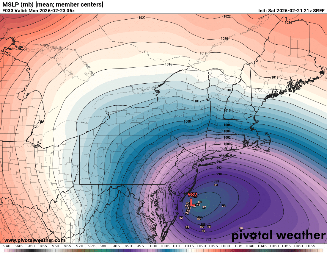 Very solid choice. Anywhere from Vineland to asbury park to Long Island and coastal New England is PRIME real estate for this. I am originally from the tristate area. Lived there nearly 3 decades. This is a CLASSIC double barrel low that bombs out and demolishes the NYC area. It doesn’t get much more textbook than this for them. My best guess from seeing these setups countless times is the jackpot falls somewhere between Toms River NJ and Brentwood on Long Island (western Suffolk county) Someone in that zone will likely exceed 24”