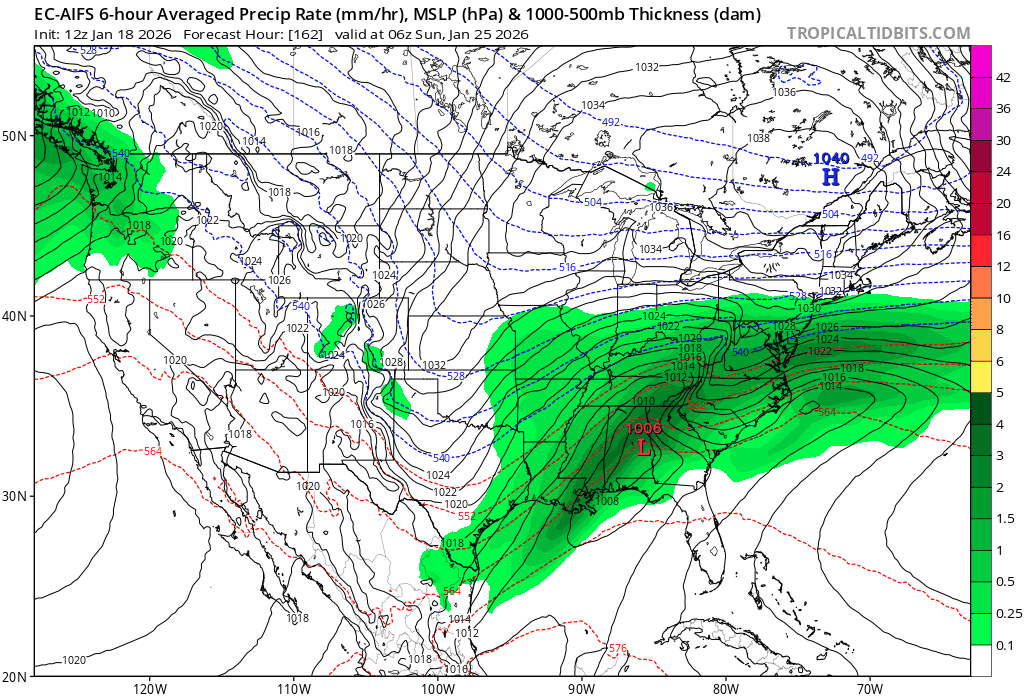 I was noticing the AI models pushing the warmth further north. Was surprised no one posted about it. I guess we only post what we want to see. I am sure the next 5 days will be a rollercoaster as usual. I just hope we can keep that ZR down at a minimal amount. The Euro AI is actually showing some warmish temps through the storm to keep ice totals down. Should be an interesting week to track.