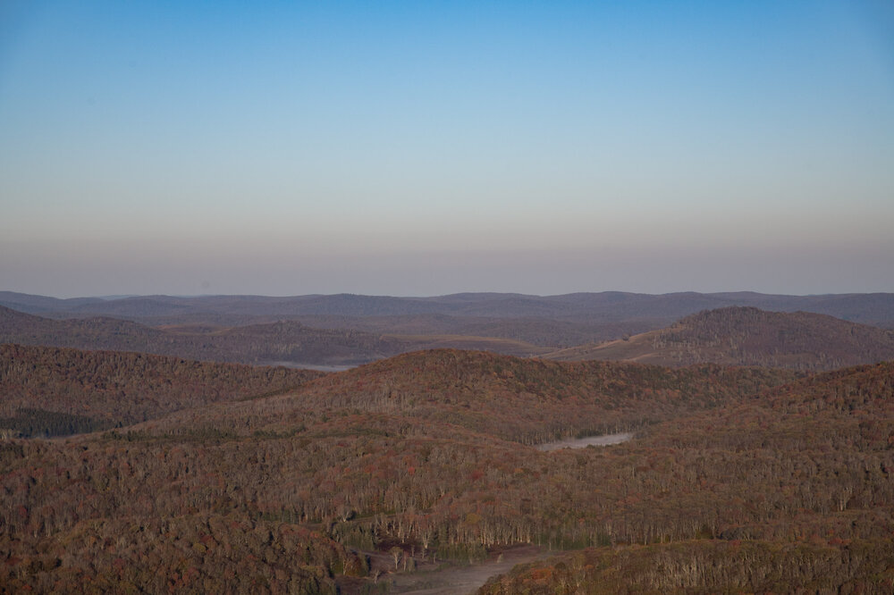 All the leaves were pretty much dead. Seemed like it was either summer leaf color or winter bareness. Still was very pretty. Here is are two only lightly edited pictures (first faces east, second faces west)