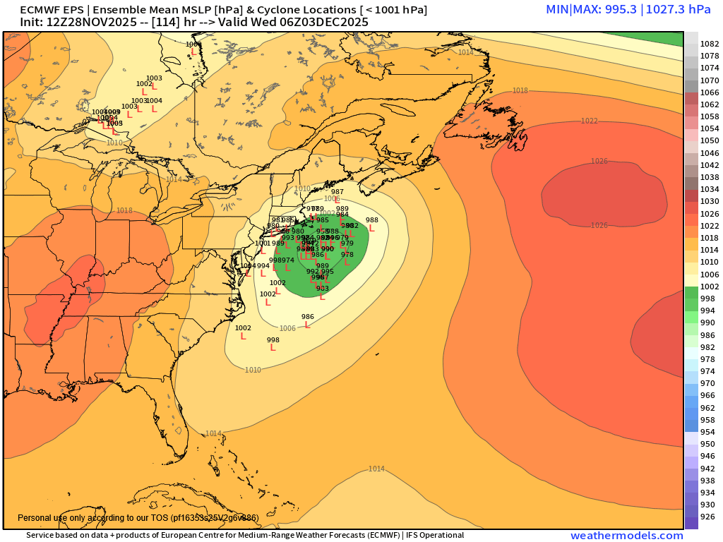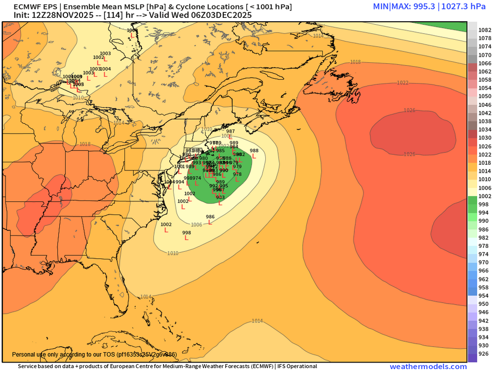 And just to add to this, if (IF) the GEFS is correct that a +EPO/Alaskan vortex pattern takes shape the 2nd week of December, it makes perfect sense that there will still be cold in the CONUS and Canada at that point. It’s not a light switch flip to immediate warmth, that would come later. A +EPO would cut off cross-polar flow and the Pacific floodgates would open. It would take some time for all the cold to get scoured out of Canada and the CONUS but it would happen, again, assuming the GEFS has the right idea @donsutherland1