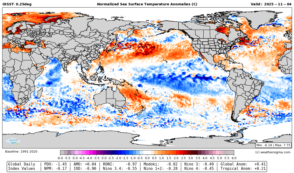 I've slowly been working on a weather model/ climate index page. I think it's far enough along to share. https://weathersigma.com/sst Within this tab you can select a range of dates to display. I've run it back to the start of 2024 if you want to check past data. Each map has a bunch of index values along the bottom. They don't perfectly agree with other sources but some of that is related to exact methodology, region of choice for the index, data set, and so on. My IOD doesn't run as cold as what I've seen on here, for example. If you find it useful, find errors, or it needs changes, let me know. But I hope it'll be useful. It updates daily like the world climate service site. The 2nd image is an IOD plot, which can be selected near the bottom of the menu.