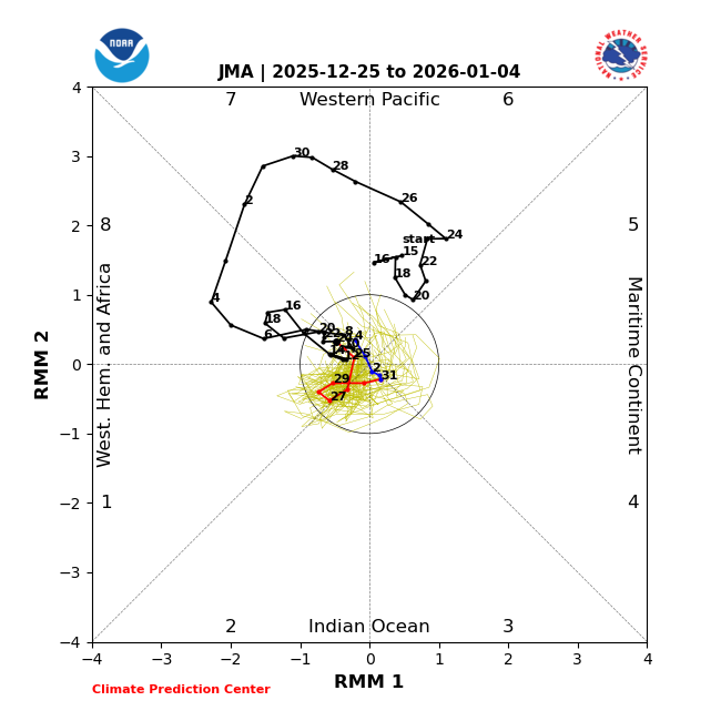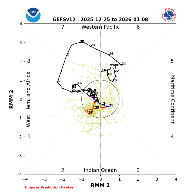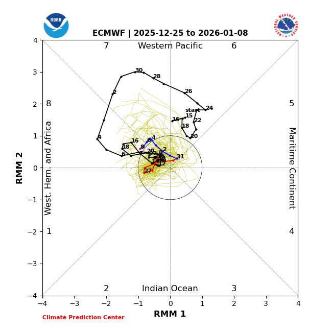 Merry Christmas, fellow wx nerds/weenies! Today’s MJO forecasts aren’t bad at all for early Jan and heading into mid-Jan with them mainly on the left side and weak: GEFS: EPS: JMA: