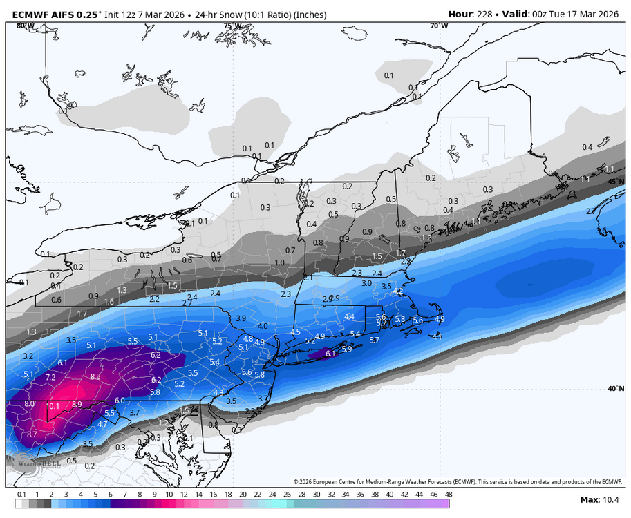 Mid March slop storm for DC and points north on the Euro AI