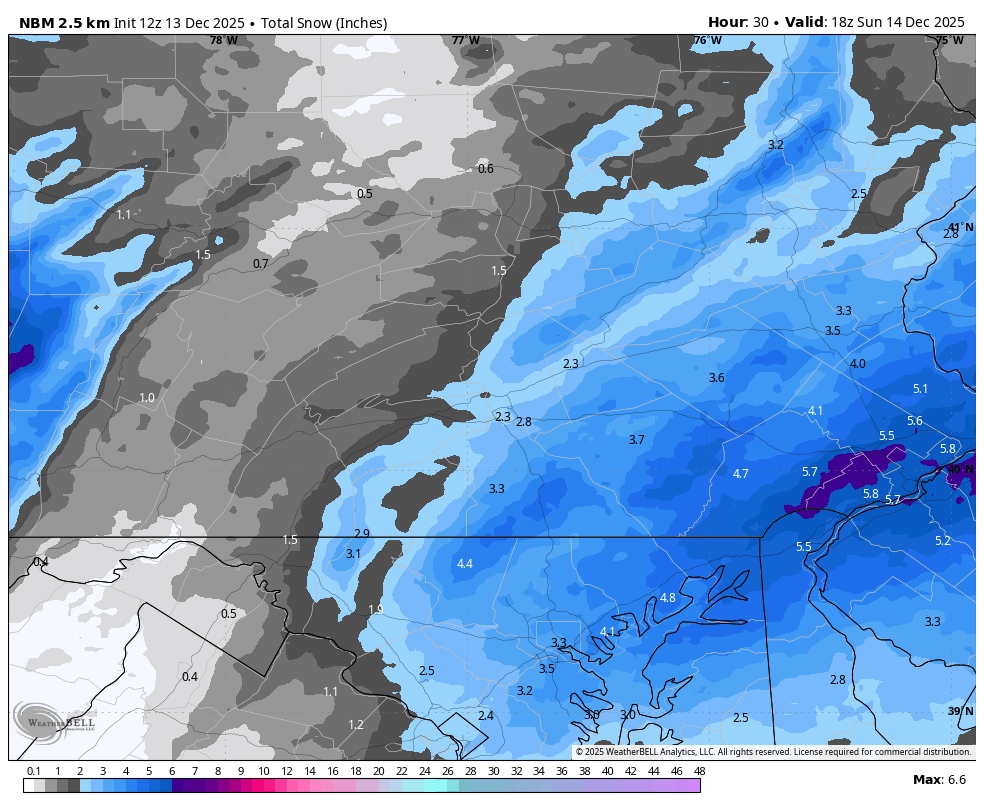 12z National Blend of Models has its best look yet especially back towards the Harrisburg area with almost 3 inches back there now. -