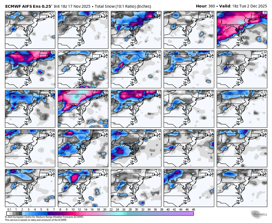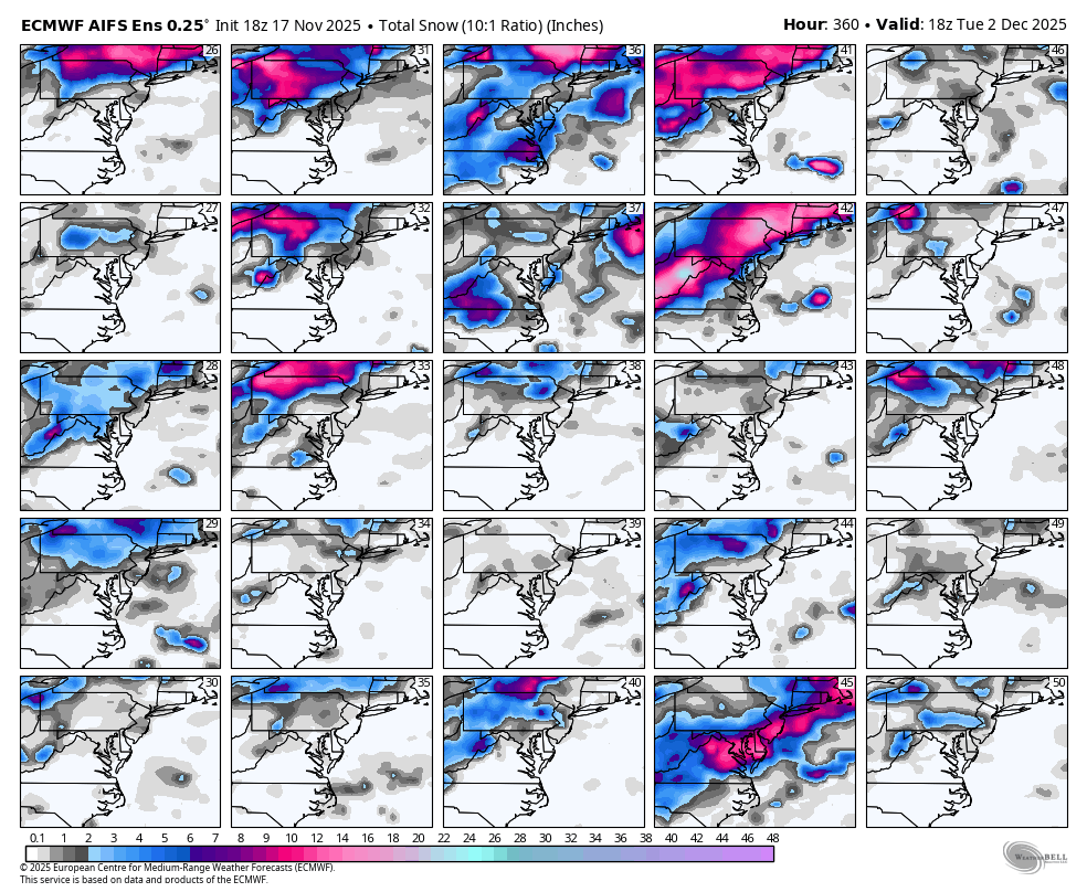 Per this EW run’s weekly 2m maps directly from the source, it remains a step down process from a mild E US start: Dec 1-7: mild Dec 8-14: cools some to slightly mild to normal Dec 15-21: cools to normal Dec 22-28: cold comes in around Christmas!