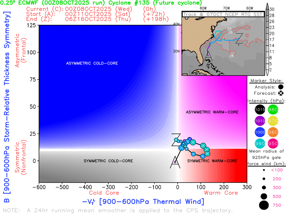 This is where NWS-NHC step in. I accept their definition. It is tropical moisture late this week unleashed by a developing cold core aloft (7h-5h as example this weekend) and the cold air bordering the system to the west and north. NWS OKX (or elsewhere) step in. I've been out of NWS since 2018 but this might get an identity of some sort. Little question in my mind regarding potential high impact along the coasts for LI-NJ southward and maybe across to the SNE coast? I just want ECAI which has been consistent cyclically for an event since the 06z/4 cycle (see trop tidbits for `12z Monday Oct 13)