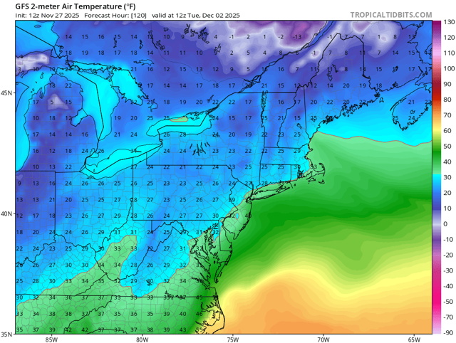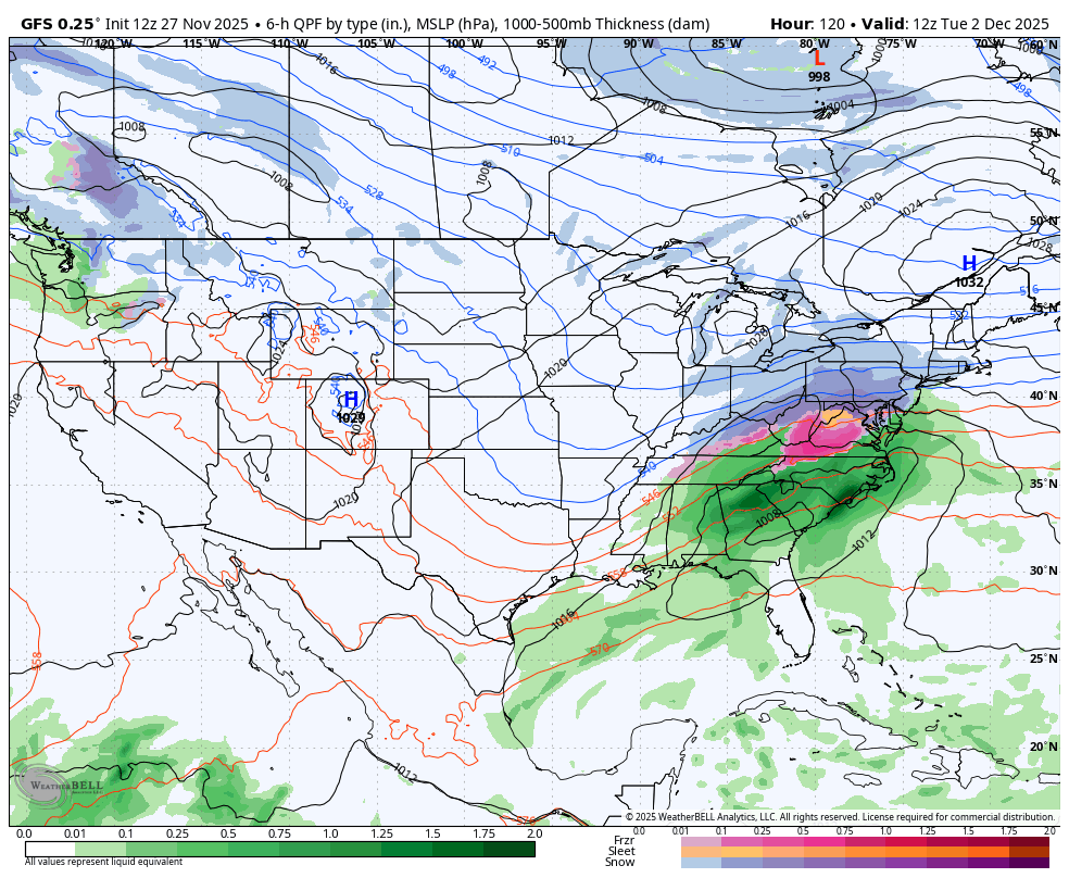 This isn’t relaying off the eastern Pacific via a S route/split stream (along the 564) until ~ Sat morning … traversing the continent in 72 hrs in fast compression/progressive flow type. Those circumstances don’t lend to confidence even at this range. The wave space in the field is higher confidence. Something’s there. But smaller giga corrections are like .5 deg on golf ball swing ending up on the left or right side of the fairway at 200+ drive I’m also leery of model-biased amplitude —> correcting down post arrivals out f assimilation regions. Once this relays into the denser sounding array, as we’ve observed more frequently than not … there’s correction toward less by 20some % … suggesting an over evaluation was taking place and running out into mid range fantasy. -