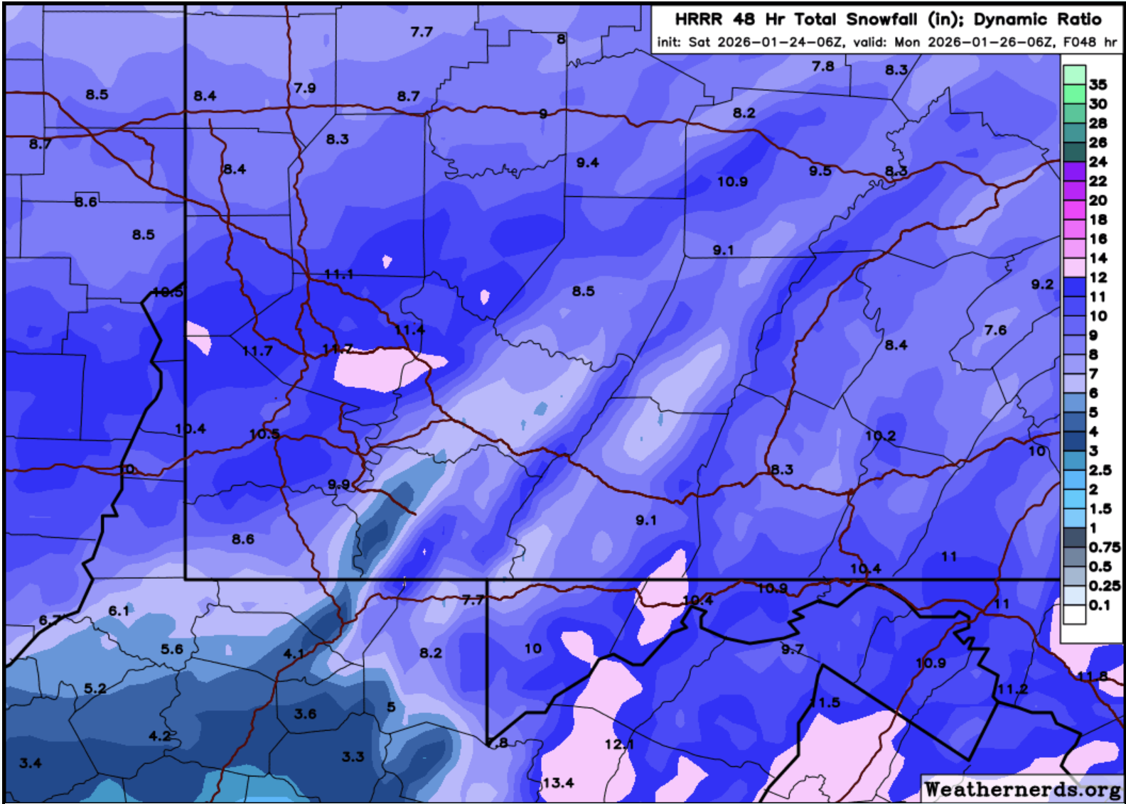 So would probably add up to about a foot even if assuming 10-1 snow ratio. 0.6” as sleet would be 1.8”, almost 2” plus the 10” snow. -